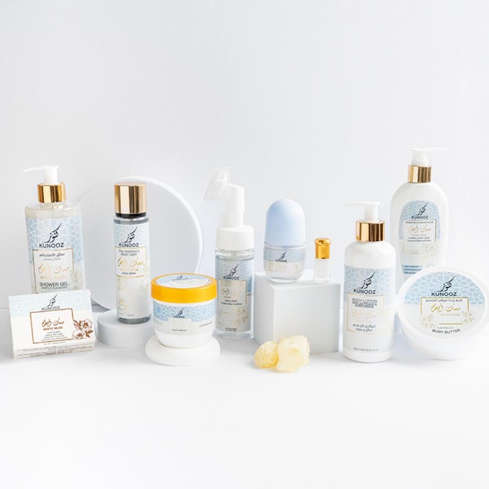 تجمع هذه المجموعة الفاخرة بين فوائد المسك الأبيض الطبيعية ومكونات طبيعية عالية الجودة لتمنحكِ تجربة استثنائية للعناية ببشرتكِ وجسمكِ.