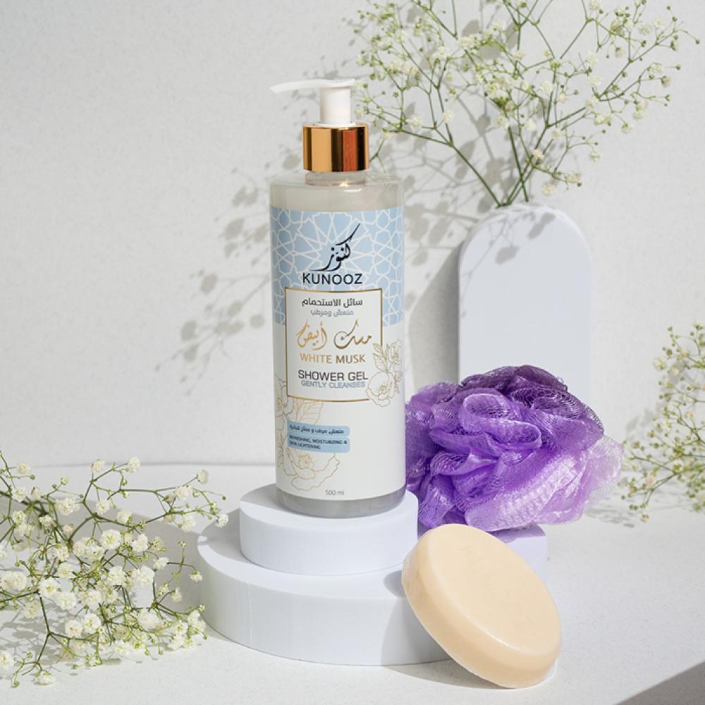 1- شاور جل للاستحمام بالمسك الأبيض .